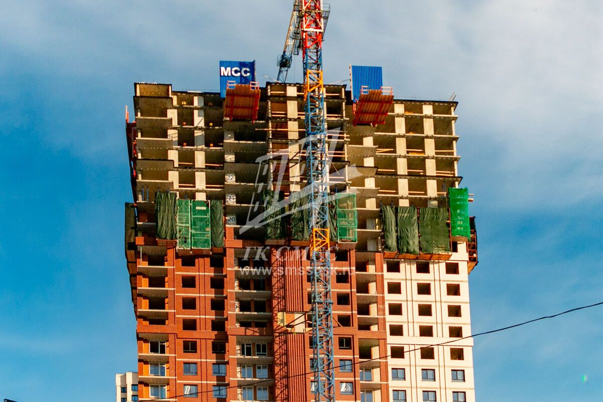 - Выполнена черновая кирпичная кладка этажей №1—№19 включительно.